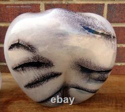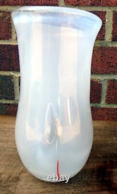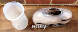 2 1980s Murano hand blown art glass vases inc coco de mer shaped Seguso style. South East Antiques are pleased to offer these two stylish Murano vases. Dating from the 1980s, these Murano vases came from a local house filled with designer interior pieces. One is in the form of a coco de mer, the other a milk glass cased and bubble included example.