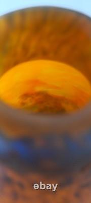 This technique makes every Vase created unique and one-of-a-kind item that is sure to catch the eye of any art lover. WE HAVE TAKEN PHOTOS WITH A LIGHT SO U CAN SEE THE AMAZING COLOURS. The vase stands at 29cm tall and is made of high-quality glass, acid etched mark Muller Freres Luneville. A perfect addition to any collection. The colours of Sunset and Fire. A unique vase of the Art Deco Period. We carefully wrap and post to all the world. Track Page Views WithAuctiva's Counter.