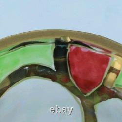 Condition: It looks as though there has been a small chip created on the rim. However, this must of happened during production, and they've let it go, as it's covered by the original gilt. Another possibility is that it is a bubble that had burst during the blowing, as it is not at all sharp. I've reduced price to reflect this.