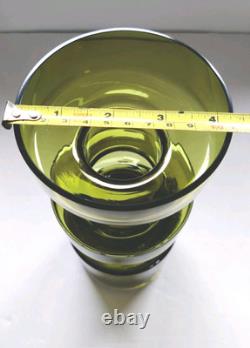 Riihimaki Olive Green Cog Glass Vase 1960s 1970s Khaki Avocado Camshaft Industrial Style Finnish Retro. Good used condition pls see pics. Vintage Riihimaki Olive Green Cog Glass Vase Finnish.