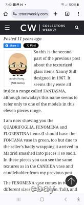 Extremely rare green Quadrifoglia very large and heavy vase by Finland's Nanny Still for a 1967 exhibition in Belgium named'Duo Design'. It was based on a four-leafed clover. This vase was blown into a wooden mould lined with nails, it wasn't widely produced, thus this is extremely rare.