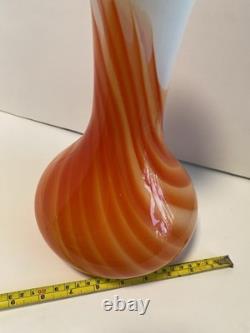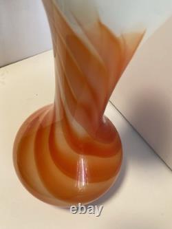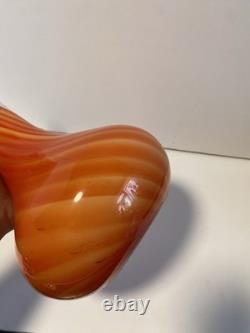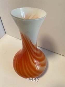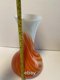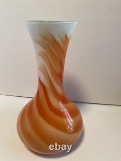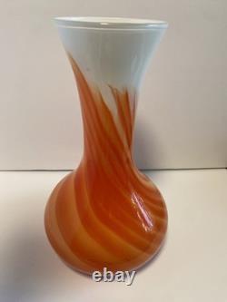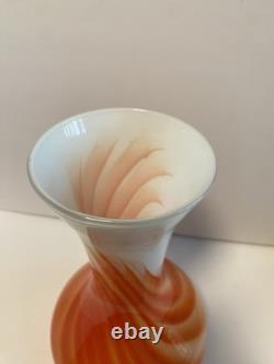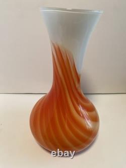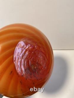 The Vetreria Artigiana Sanminiatello V. Glass Vase is a vintage Italian hand-blown glass vase in a striking orange colour. This original piece from the Vetreria Artigiana Sanminiatello brand exudes an Italian theme and showcases the art glass production style.