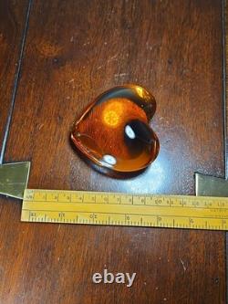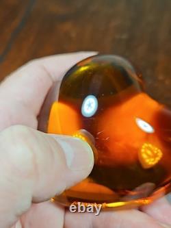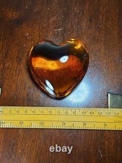 Vintage Baccarat French Crystal Orange Puffed Heart Paperweight. Condition Is "Used", Some Light Scratches And Small Areas Of Abrasion To The Surfaces Commensurate With Age And Use.