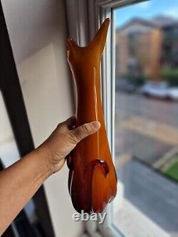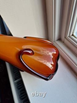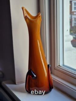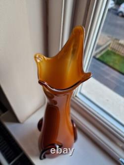 Vintage Empoli Glass Vase by Cristalleria Fratelli Betti ALROSE Tall Vase. Amber or dark orange or coffee colour. Small scratch on one of the applied stem.