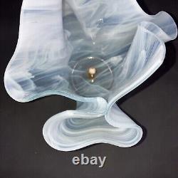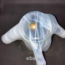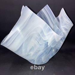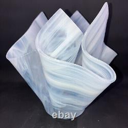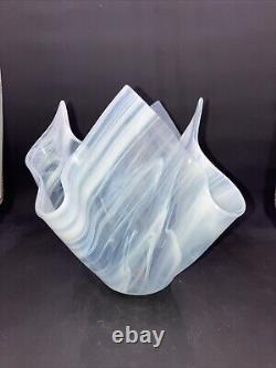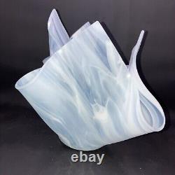 Vase en mouchoir opaline blanc perlé en forme libre en verre artistique fait à la main signé